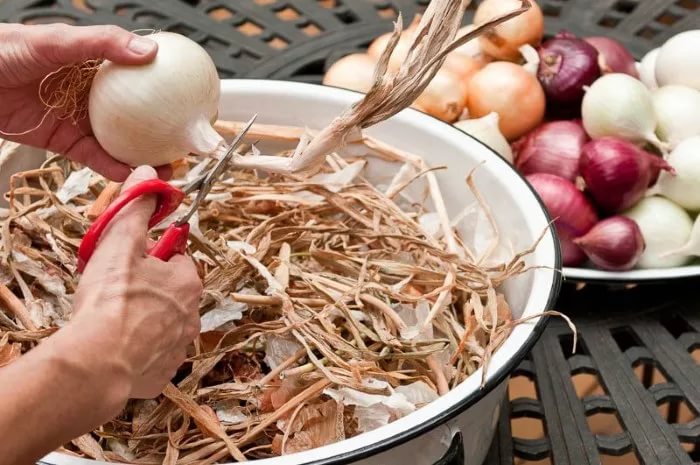 Перед тем как отправлять на хранение, выкопанный и предварительно подсушенный на открытом воздухе репчатый лук следует обрезать, очистить и просушить. Последовательность обработки: